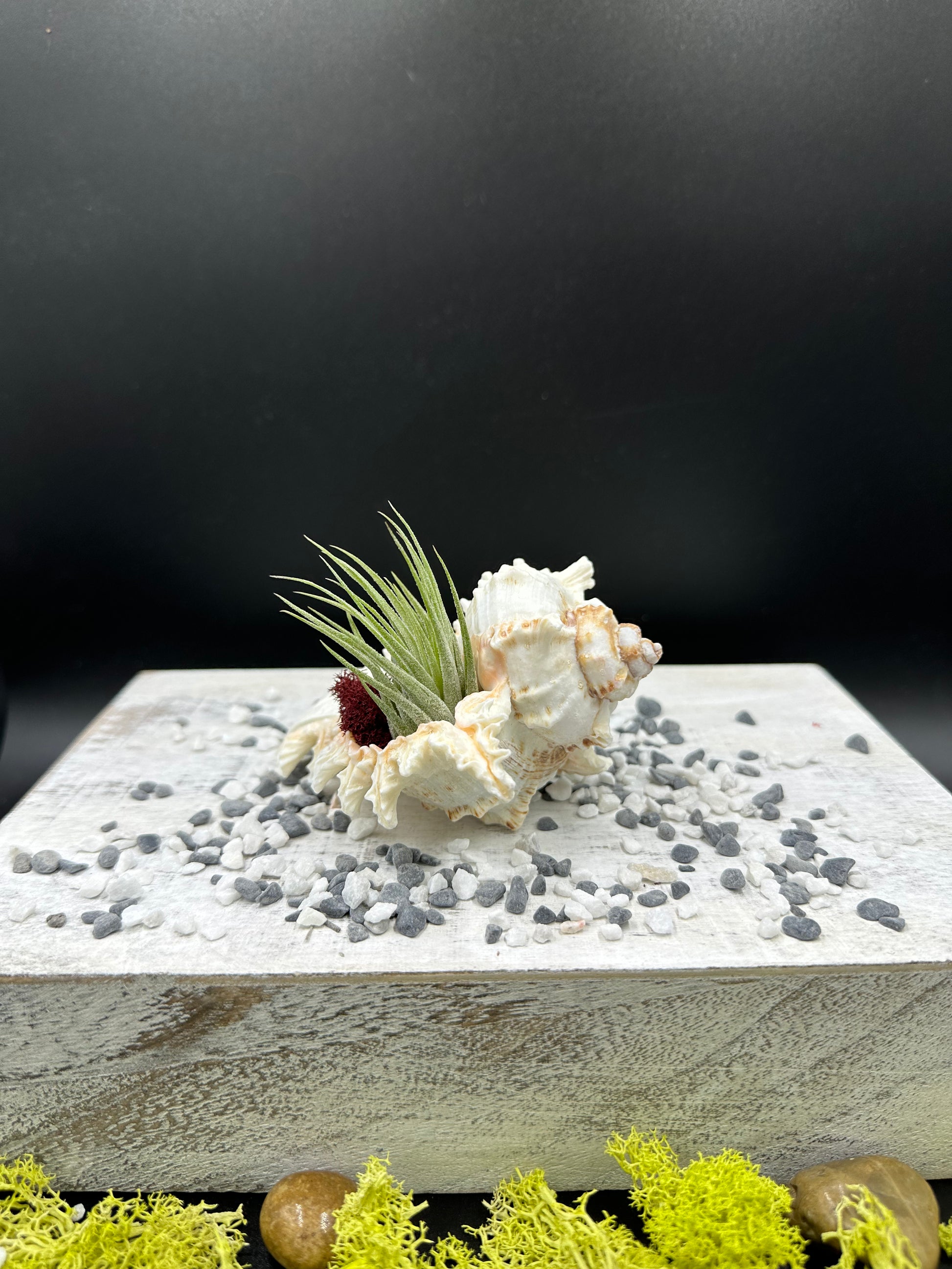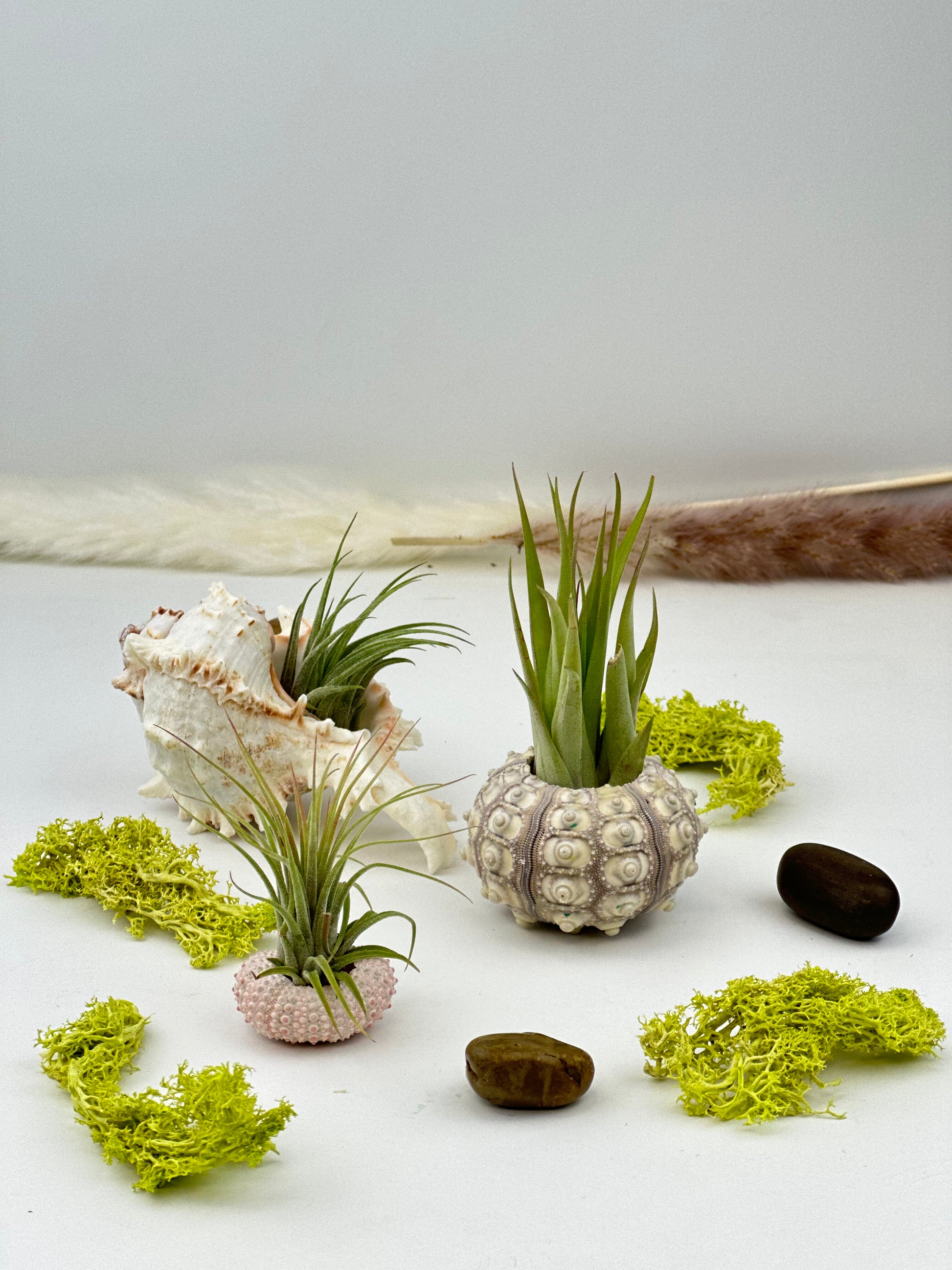 These sea-shell air plant pots come in three different sizes, making them a versatile and beautiful addition to any living space. Each pot features a unique and carefully crafted sea shell design, with a delicate air plant nestled inside. These pots are a stunning reminder of the beauty and wonder of the ocean.